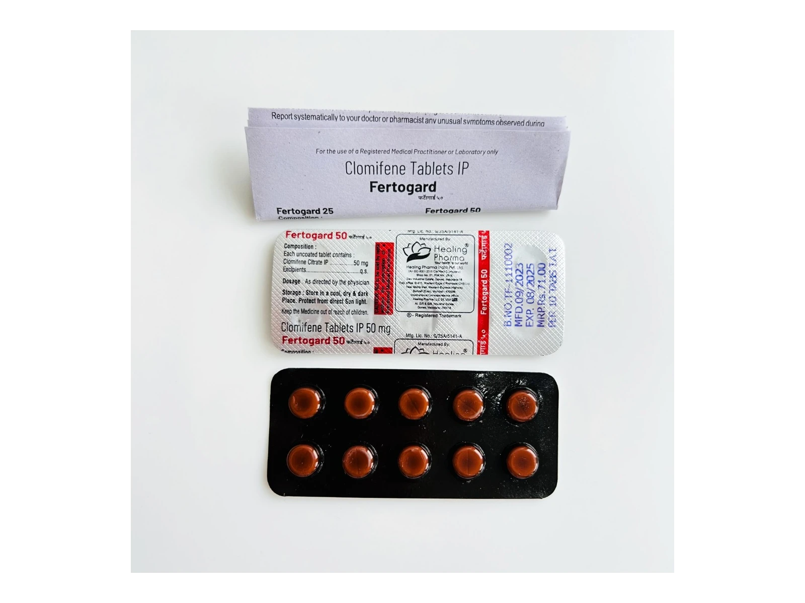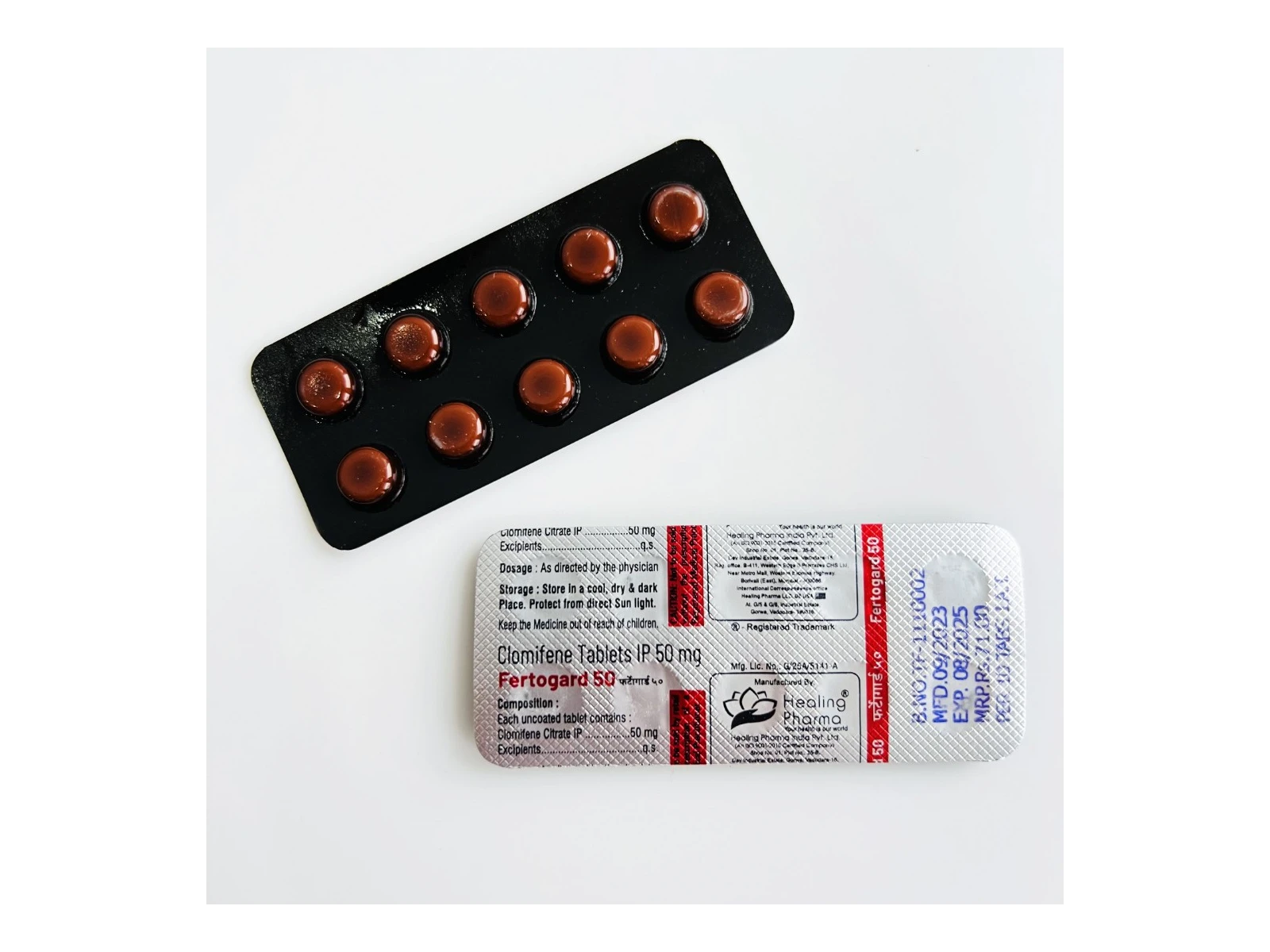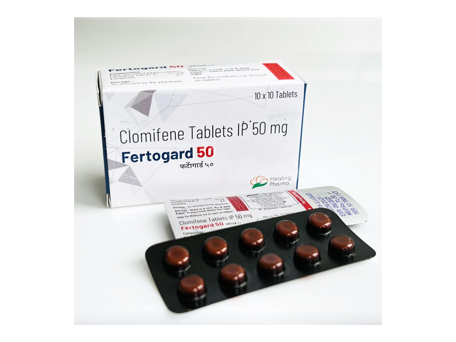 Основною діючою речовиною в цьому препараті є кломіфен. Фертогард 50 - один з небагатьох способів викликати овуляцію при безплідді, спричиненому ановуляцією або олігоовуляцією. Немає доказів використання кломіфену у безплідних людей без визнаних причин. У таких випадках дослідження показали, що при прийомі кломіфену порівняно з плацебо наукова частота настання вагітності протягом циклу становить 5,6%. Правильна тривалість прийому препарату має вирішальне значення; його необхідно приймати з п'ятого дня циклу, а також щоденно перемішувати. Кліфіфен включає рівні стереоізомери: енкломіфен і зукломіфен. Зукломіфен має виражену естрогенну дію, в той час як енкоміфен - виражену андрогенну, тобто стимулює вироблення тестостерону за рахунок стимуляції осі ГРГ.