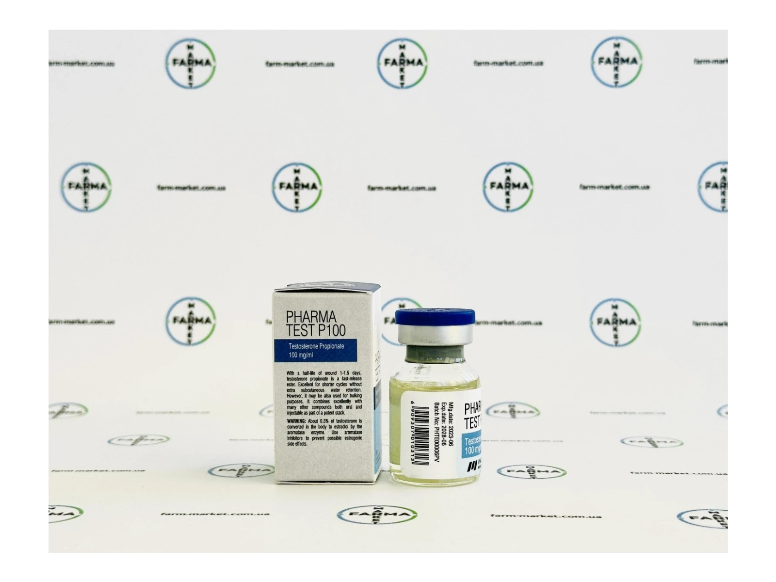 Test P Pharmacom Labs поставляється в двох формах: ампули і флакони. Ціна залежить від обраної упаковки. На упаковці вказано дату виготовлення, а всередині додається інструкція із застосування.